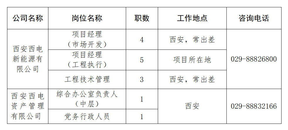 本次面向公司内部(在册在岗)公开招聘岗位信息如下: